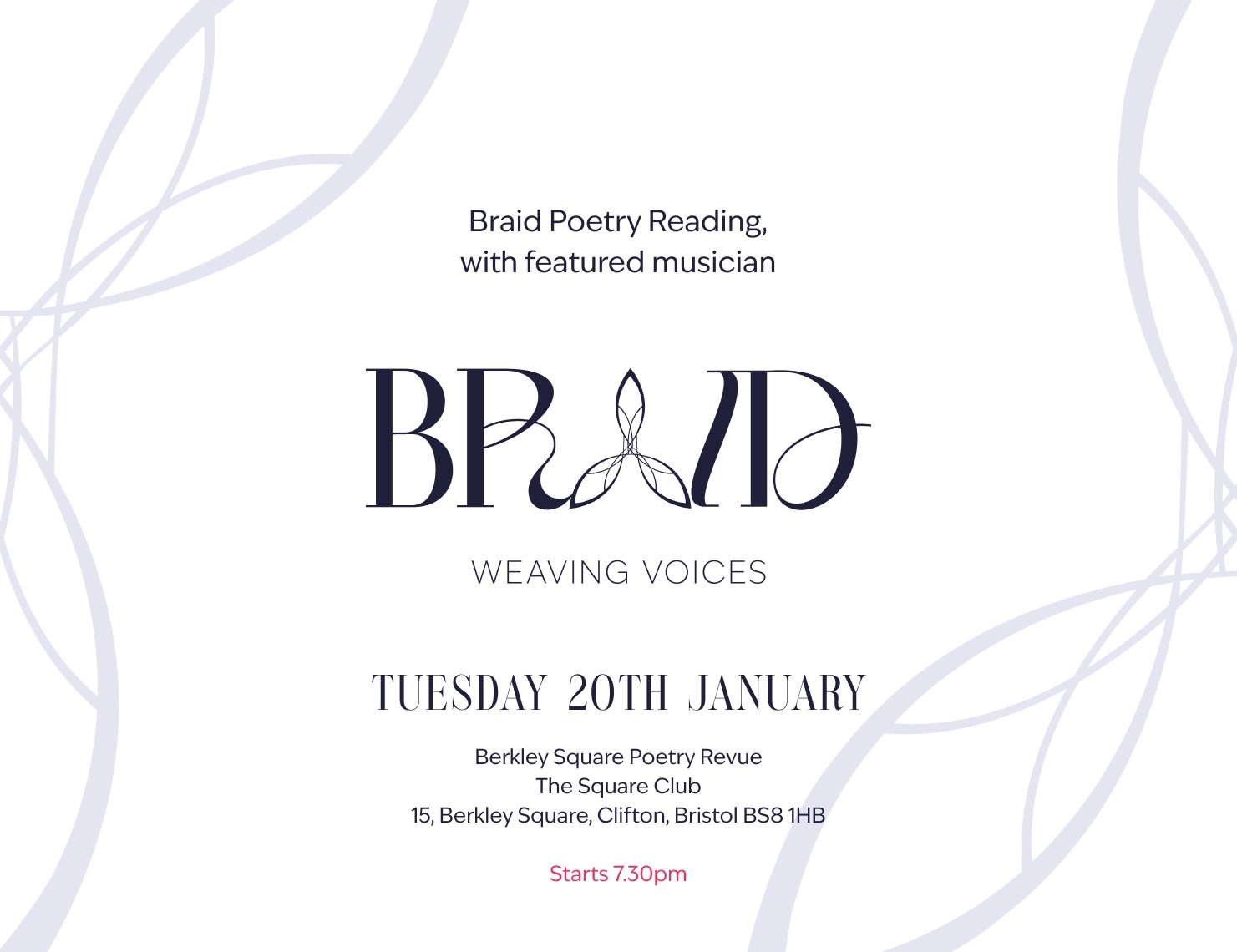 Braid is a Bristol-based poetry performance group led by Kaycee Hill, Naomi Madlock, and Kate Noakes. We are united by a shared passion for words and storytelling, bringing together perspectives from different generations.